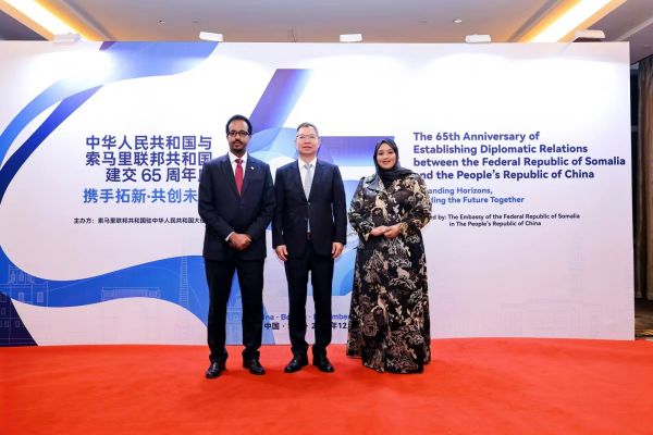 2025年12月18日,外交部非洲之角事务特使胡长春应邀出席由索马里驻华使馆主办的中索建交65周年招待会并致辞。