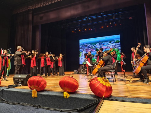 随后,帕拉伊巴室内乐团成员走上舞台,在简短介绍后,伴着期待的目光,乐手们整齐划一地奏响手中的乐器,演奏正式开始。乐队一共演奏了十首曲目,以一首中文乐曲开始,与巴西乐曲交替进行。根据歌曲的不同,背景屏幕上同时播放着相应特色的宣传片。随着悠扬的中国乐曲,一幅幅色彩缤纷的自然、人文中国画卷铺展开来,青绿的绿岭、西湖,黛蓝的天山,郁金的经幡、大漠,银白的雾凇、雪山,大红的故宫,一同构成了炫色的中国。当演奏当地经典乐曲时,巴西东北部的风光跃然屏上。乐团表演将活动引入高潮,在场的观众被音画交相辉映的美感所吸引,自行跟随乐曲打着节拍。
