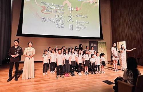 在中心图书馆这座极具未来感的船型建筑内,中文的韵律与现代建筑美学奇妙交融,中华传统文化与西方当代设计碰撞出灿烂的火花。图书馆演出大厅座无虚席,观众席后的平台也挤满了翘首以盼的观众。激情澎湃的歌舞,刚柔并济的武术,豪迈奔放的诗词朗诵,温婉动人的抒情演唱,来自当地中文学校和艺术团体的青少年为观众呈现了一台精彩纷呈的文艺演出。