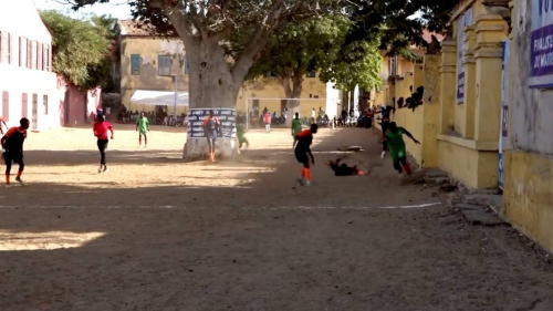 在历史建筑环抱的场地中央,一棵巍峨的猴面包树伸展着苍劲的枝干,如同历史的守望者,俯瞰着一场充满活力的角逐:戈雷岛“市长杯”足球决赛激战正酣。